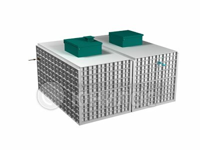 Автономная канализация для дачи АСТРА 50 мидиТехнические характеристики: Количество постоянно проживающих — 50 человек Переработка стоков за сутки — 10 м3 Залповый сброс, максимальный — 1800 л. Потребляемая энергия, сутки — 7 кВт. Масса — 910 кг Размеры, м — 2625 x 2160 x 3000